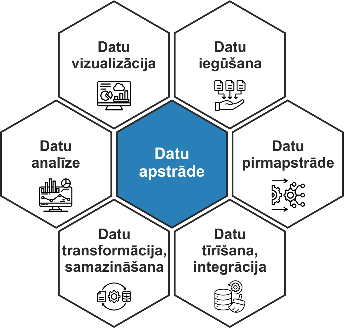 Datu apstrādes process parasti ietver šādus posmus: