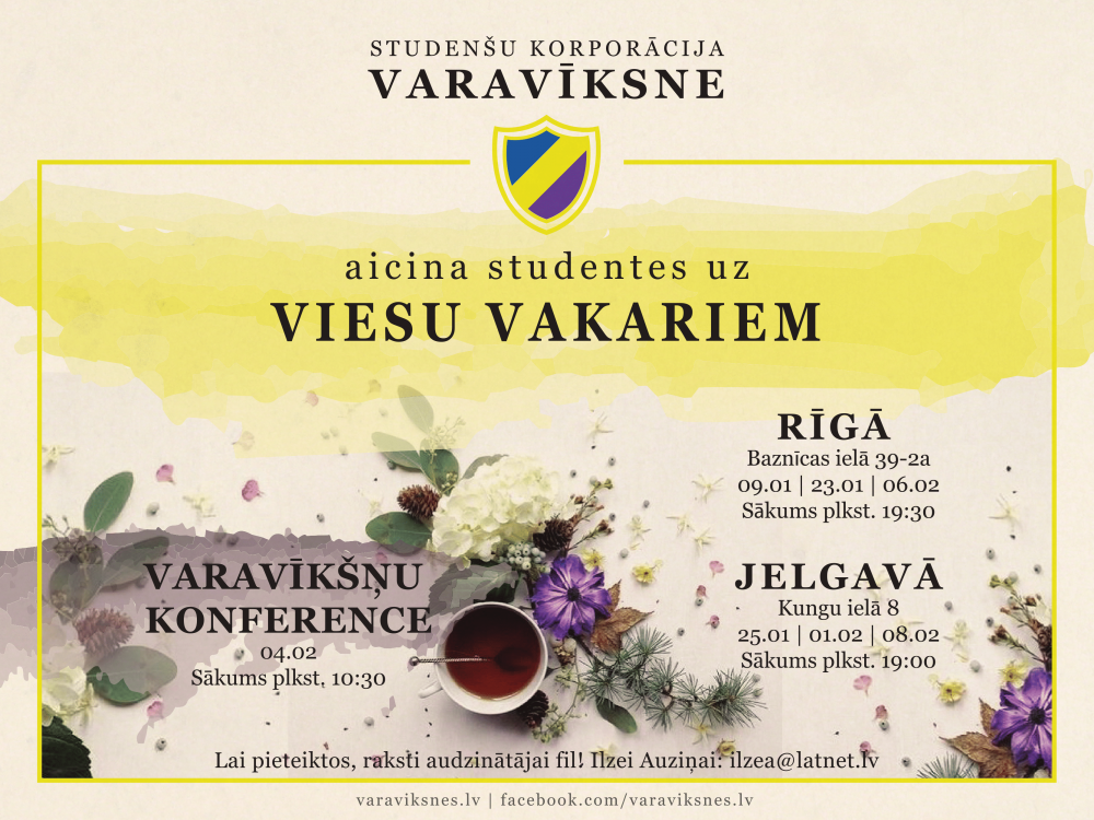 Vairāk informācijas par studenšu korporāciju “Varavīksne” mājas lapā un www.facebook.com .