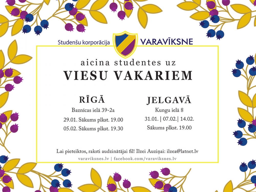 Vairāk informācijas par studenšu korporāciju “Varavīksne”: www.varaviksne.lv ,facebook.com/varaviksne.lv un LLU mājaslapā.
