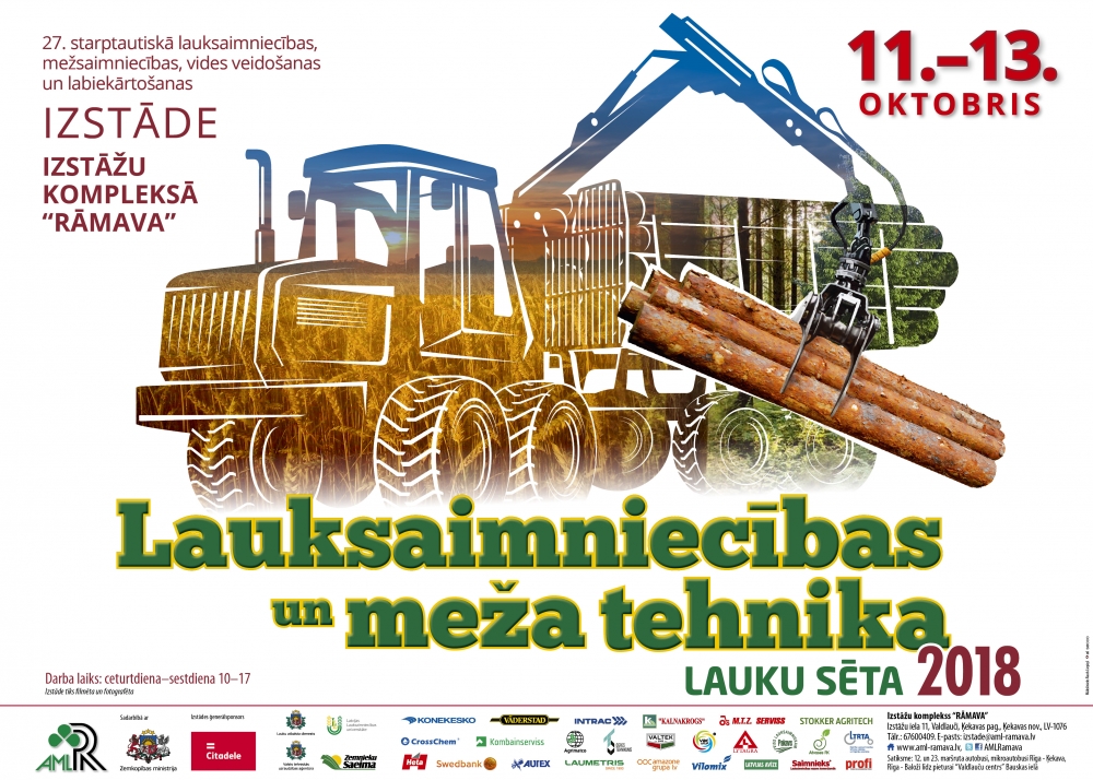 LLU dalība izstādē "Lauksaimniecības un meža tehnika. Lauku sēta 2018" Rāmavā Sākas 11.10.2018 10:00 Beidzas 13.10.2018 17:00 Vieta Izstāžu komplekss "Rāmava" Izstādes programma