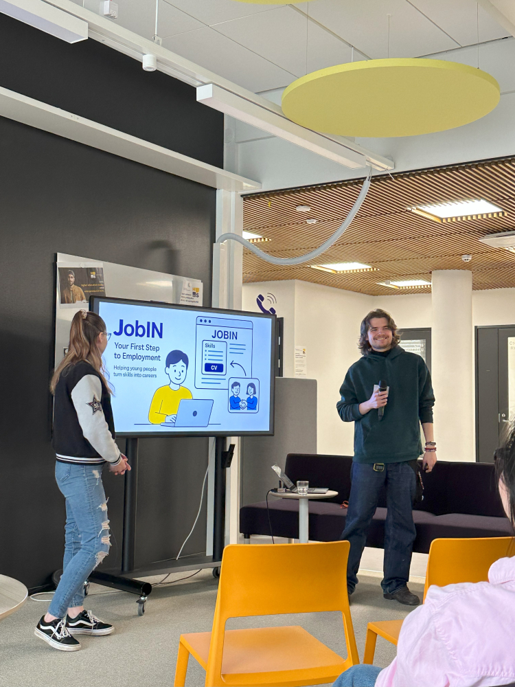 Produkts JobIN- IT risinājums, kas domāts jauniešiem, lai palīdzētu sagatavoties darba intervijai, sagatavot CV un motivācijas vēstuli, kā arī savestu kopā darba devējus ar jauniešiem- potenciālajiem darba ņēmējiem.