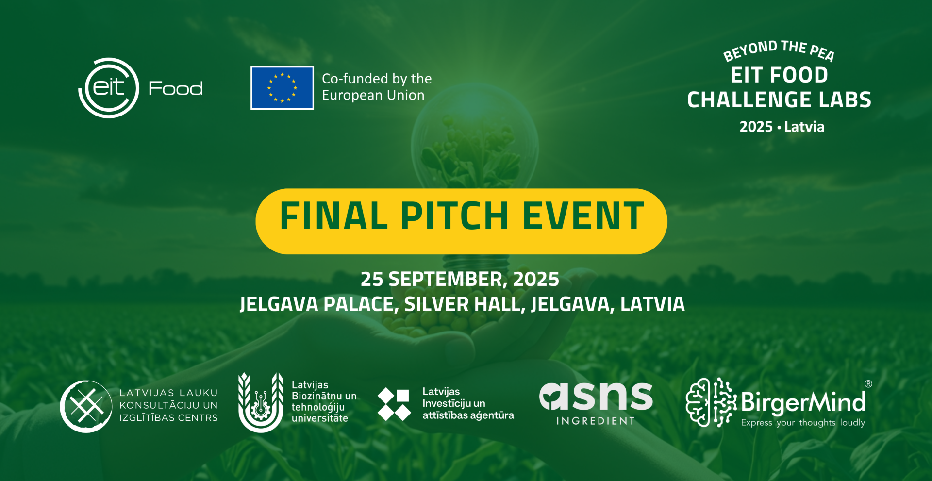 EIT Food Challenge Labs 2025 ir Eiropas Inovāciju un tehnoloģiju institūta (EIT) pārtikas industrijas zināšanu un inovāciju kopienas EIT Food iniciatīva. Latvijā to īsteno Latvijas Biozinātņu un tehnoloģiju universitāte (LBTU) kā EIT Food Hub Latvija, sadarbībā ar BirgerMind, kas nodrošina pasākuma organizatorisko atbalstu un prototipēšanas procesu, un ASNS Ingredient, kas izvirza aktuālos uzņēmējdarbības izaicinājumus un piešķir balvas labāko risinājumu autoriem.