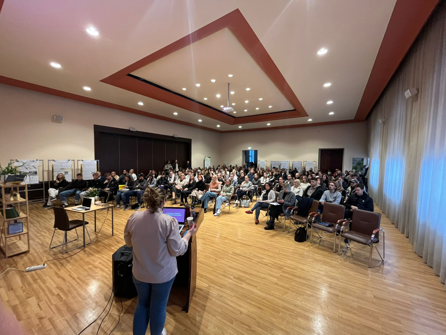 Egija Aurēlija Liepiņa - pasākuma dalībniekiem stāstīja par tēmu "ESAF absolvente, kura raksta receptes inovāciju iepirkumiem". 2022. gadā viņa absolvēja akadēmiskā bakalaura studiju programmu "Ekonomika" un šobrīd strādā kā vecākā eksperte Ekonomikas ministrijas Uzņēmējdarbības konkurētspējas departamentā. Uz jautājumu, kādu padomu kā absolvente dotu šī brīža studentiem, E. A. Liepiņa atbildēja: "Nebaidies kļūdīties un meklē iespējas ārpus formālā – piedalies projektos, stipendiju konkursos un pašpārvaldes organizētos pasākumos. Tur slēpjas studiju pievienotā vērtība",