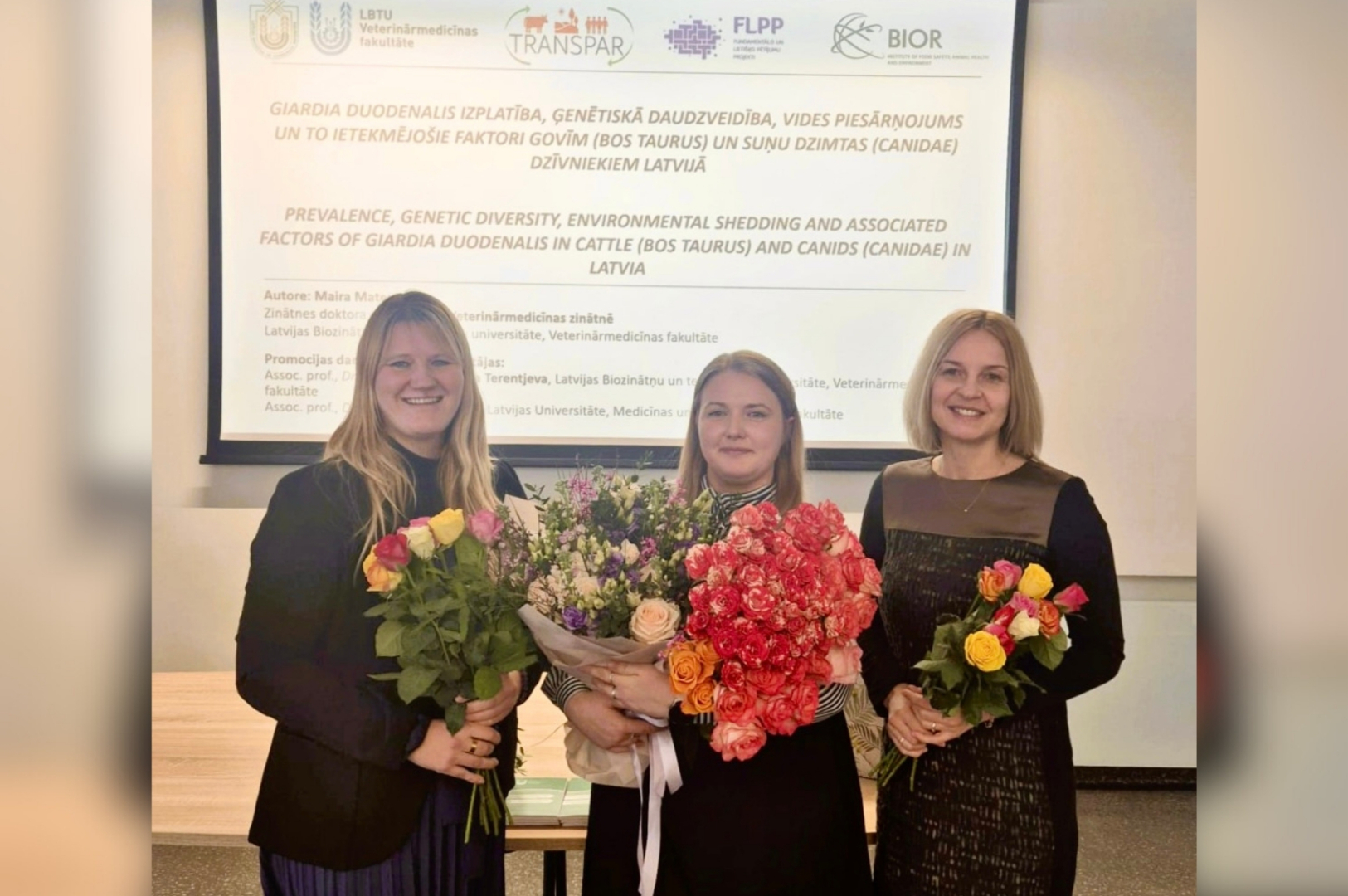 6. februārī Latvijas Biozinātņu un tehnoloģiju universitātes Veterinārmedicīnas fakultātē promocijas darbu "Giardia duodenalis izplatība, ģenētiskā daudzveidība, vides piesārņojums un to ietekmējošie faktori govīm (Bos taurus) un suņu dzimtas (Canidae) dzīvniekiem Latvijā / Prevalence, genetic diversity, environmental shedding and associated factors of giardia duodenalis in cattle (Bos taurus) and canids (Canidae) in Latvia" aizstāvēja Maira Mateusa (ORCID: https://orcid.org/0000-0002-7731-7263) un ieguva zinātnes doktora grāds zinātnes doktors (Ph.D.) lauksaimniecības, meža un veterinārās zinātnēs.